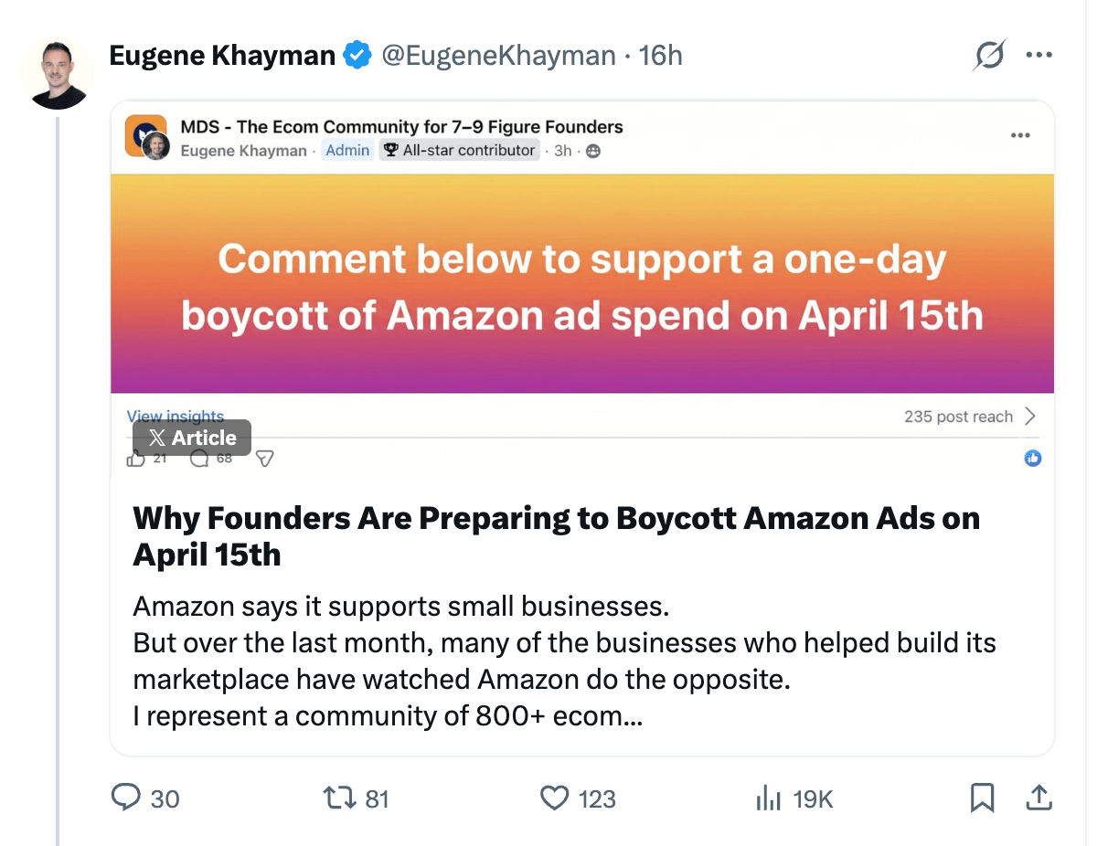 And if Reuters’ report is right that Amazon may move Prime Day up to late June, sellers will have even less breathing room between spring discounts and summer deal pressure.